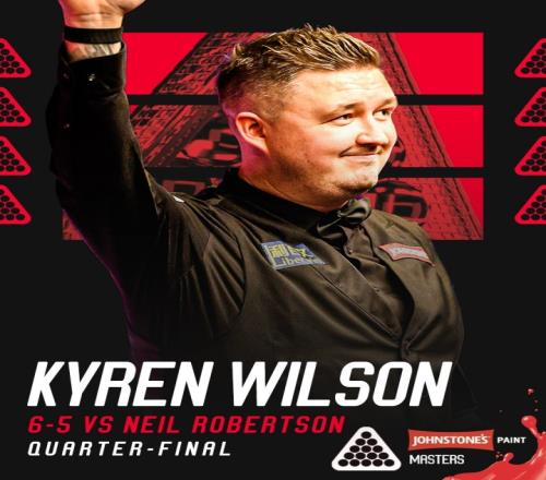 半场过后凯伦·威尔逊3-1领先尼尔·罗伯逊,中场休息后尼尔·罗伯逊连续追分反超率先到达赛点,双方战至决胜局,最终凯伦·威尔逊6-5战胜尼尔·罗伯逊晋级四强,他将在半决赛对阵吴宜泽!